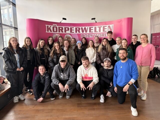 Heute durften wir – die Physio- und Ergotherapeuten im 3. Lehrjahr – im Rahmen des Anatomie- und Physiologieunterrichts die Ausstellung „Körperwelten“ in Berlin besuchen. Dort konnten wir einen spannenden Einblick in die Organsysteme, den Aufbau des menschlichen Körpers sowie dessen Funktionsweise gewinnen. Dabei hatten wir die Möglichkeit, unser Wissen zu vertiefen und anhand der Modelle vieles besser zu verstehen.
